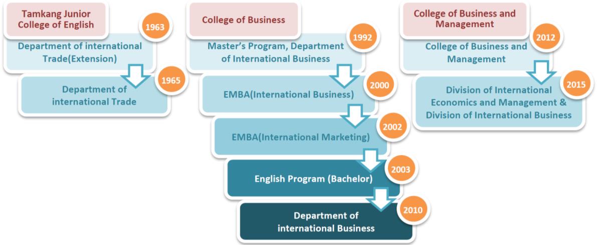 The Department renamed as Department of International Business in 2010. In the academic year 2014 with an aim to emphasis the development of globalization and to position two different existing programs with harmony, the department restructures its curriculum with one division of international economics and management which emphasizes traditional International Business contents and with another division of English-taught global commerce which concentrates on global commerce activities and puts into considerations of the international difference and reconciles all global resources with harmony. The department set sails to cultivate qualitative international business and global commerce elites. Every graduate from our department can play a key role in every professional area and can become the social ascendancy of energy of society.