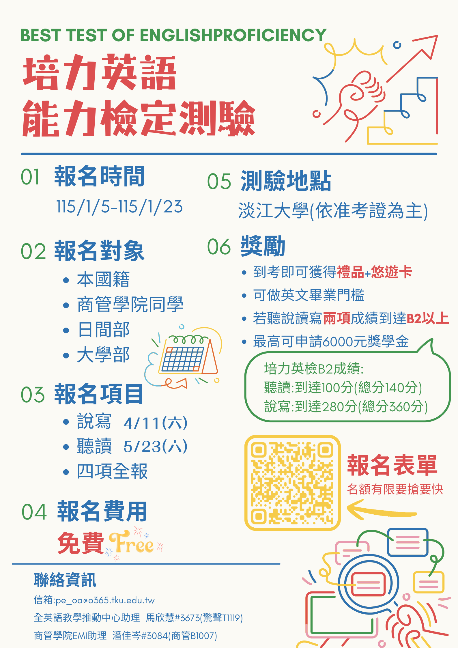 📎 本信已附上測驗宣傳文宣(附件一),敬請貴系協助轉知學生。