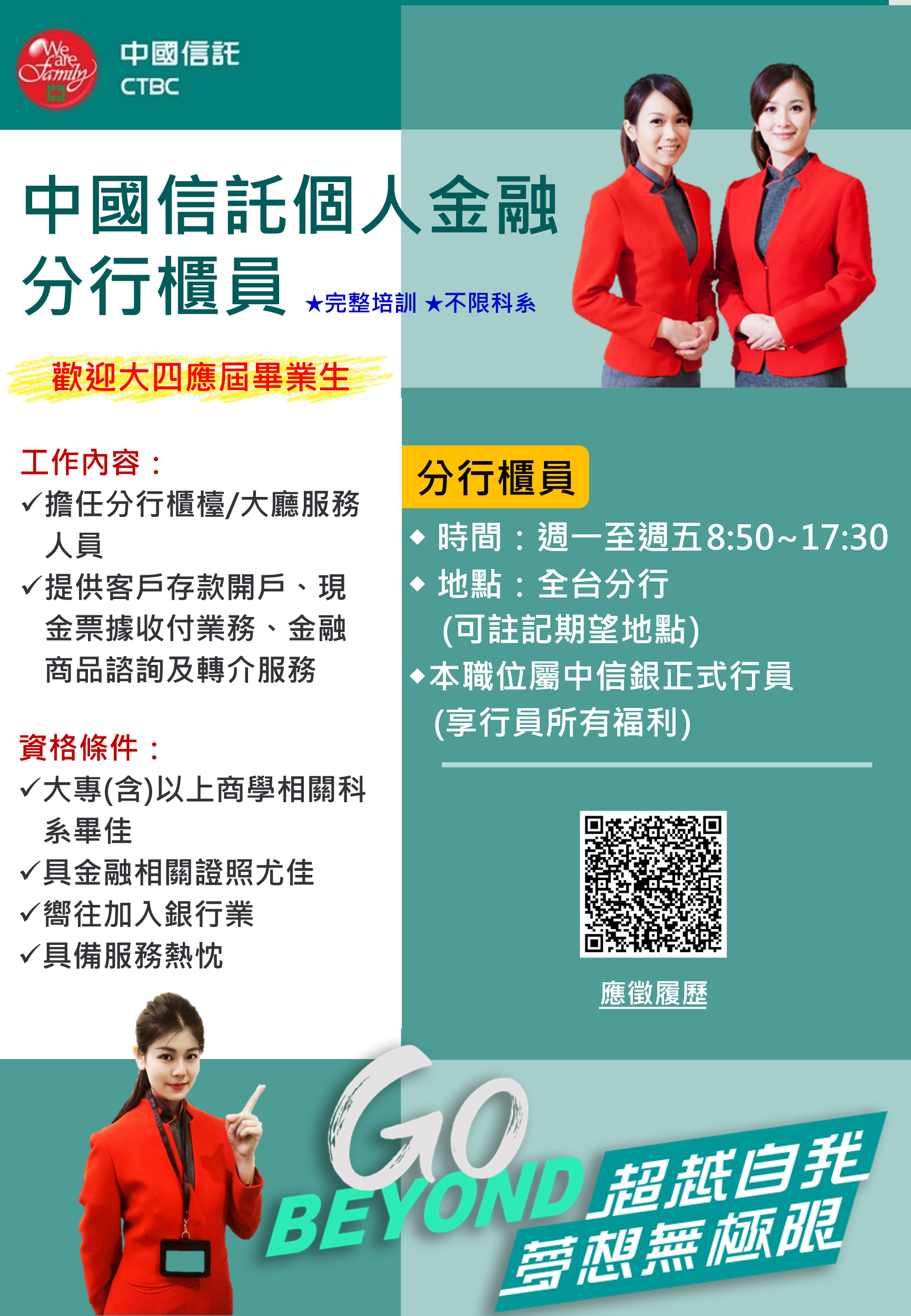【徵才】中國信託分行櫃員熱烈招募